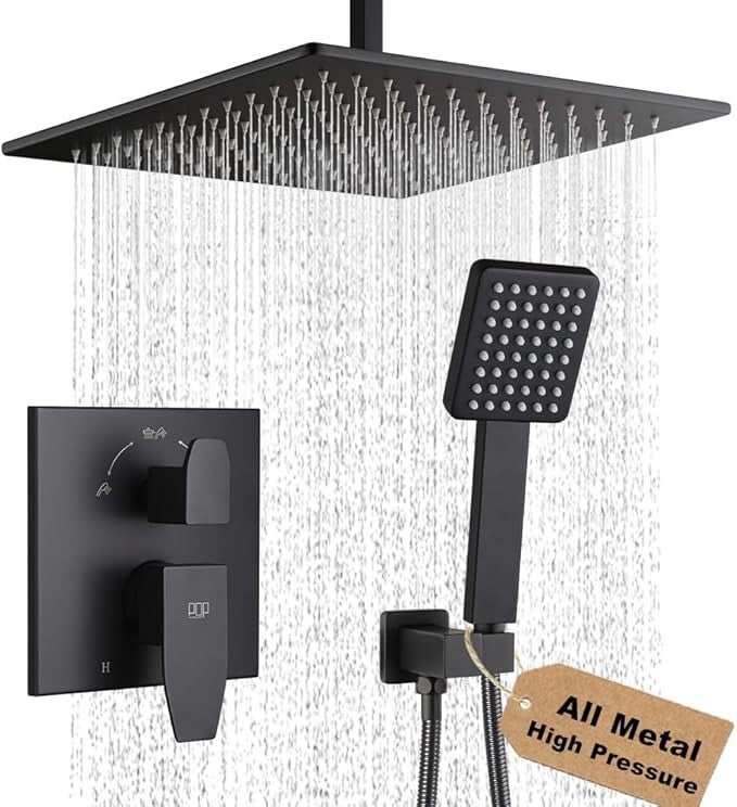 - HIGH PRESSURE RAINFALL SHOWER:Utilizing cutting-edge air injection technology, this rainfall shower head blends water with air, doubling the pressure for a natural rain simulation. The reinforced panel, more than doubled in thickness, ensures durability under increased water pressure. Not only does it deliver outstanding longevity, but it also conserves water by up to 30%-50%, making it ideal for households with low water pressure seeking a high-pressure shower experience.